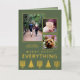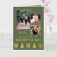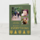These simple 3 photo folded greeting cards in an earthy dark sage green color with real gold foil printing are perfect for your interfaith family. A row of glimmering menorahs and trees along with simple modern fonts keep the design uncluttered to showcase your family's pictures. These trendy interfaith holiday folded cards open to a medium sage green with the option to add a personalized message for your blended Christmas and Hanukkah family.
