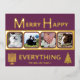 These simple 4 photo holiday postcards in pretty plum purple with real gold foil printing are a fun choice for your interfaith family. A single Hanukkah menorah on the left and a stylized modern Christmas tree on the right are paired with simple font to keep the design uncluttered and keep the focus on your family's pictures. These interfaith holiday real foil postcards reverse to a white back with a medium purple border and the option to add an additional message as well as your return address. Holiday postcards for your blended Christmas and Hanukkah family and friends for a Merry Happy Everything.