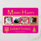 These simple 4 photo greeting cards in bright hot pink with real gold foil printing are a cute choice for your interfaith family. A Hanukkah menorah on the left and a stylized Christmas tree on the right paired with simple modern fonts keep the MERRY HAPPY EVERYTHING design uncluttered and showcases your family's pictures. These interfaith holiday flat cards reverse to a medium pink with the option to add an additional message for your blended Christmas and Hanukkah celebrations. The real gold foil printing adds a bit of elegance as you embrace the faiths.