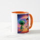 This is a tender and cosmic universe with this mug illustrated by a small astronaut and an adorable alien, gathered under a star-filled sky in soft colors. This scene full of innocence and imagination captures a magical moment of intergalactic encounter, ideal for dreamers, science fiction lovers or children’s universes. With its 3D cartoon style, vibrant colors and shiny finish, this mug is much more than a daily object: it is an original and comforting gift, perfect for inspiring curiosity and tenderness at every sip. Whether it is to decorate a desk, to accompany a break or to offer a space enthusiast, this mug will delight both young and old.