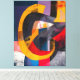 Bold arcs and intersecting planes sweep across the canvas in a dynamic balance of movement and restraint. Saturated golds and reds cut through deep blues, charcoal, and muted neutrals, creating a layered composition that feels both architectural and fluid. Fine textural marks and subtle abrasion add depth and tactility, inviting closer inspection. Interlaced Horizon brings a sense of structured energy to modern interiors, offering a striking focal point that rewards prolonged viewing.