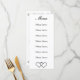 This black and white Interlocked Hearts menu card can be customised with your wedding menu. On the back, the card features the couple's name and the date of the wedding.