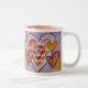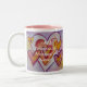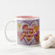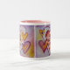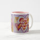 Watercolor painting of hearts interlocking with each other like love from life relationships. The colours are a soft lavender purple, pinks, red, yellows, and gold. This image is meant is a tribute to all those we love in our life. The interlocking love heart connections hold us together in joy and celebrations. It is love too for strengthening our souls for life's challenges. Personalise the heart mug with your own text and images using the Customise It option. Make special Valentine's Day, Wedding, Engagement, Baby, or Love custom mug gifts! Profits from this sale support the non-profit 501(c)3 DonnaBellas Angels.