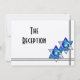 Clean, sophisticated, 4.50"x6.25" Wedding Reception Invitation that features the original digital design by Leslie Sigal Javorek of two interlocking Stars of David that look as if they were made of leaded, stained glass, combined with a classic Art Deco font, borderlines and then set against a champagne-hued 110 lb. metallic stock.
