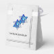 Art Deco style Favour Bags for Wedding, Anniversary or Bat Mitzvah guests. A pair of Jewish Stars looking like blue stained glass sit on a faux brushed silver base. 2 custom text fields on front + 1 on back for honoree's names, date & Thank You Message.