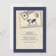 This design captures the spirit of wanderlust and love, blending vintage travel aesthetics with rustic charm. Featuring classic airmail stripes in red and blue, muted beige tones, and subtle map textures, it evokes the feeling of setting off on a grand romantic journey. Elements like postage stamps, world map details, and retro styling make it perfect for couples who dream of a global celebration filled with adventure, connection, and timeless elegance.