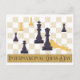 International Chess Day is July 20th. Design features a chess board, kings, queen, castle, and pawn.