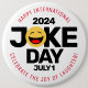 Laughter is the best medicine, and what way to tickle your funny bone and celebrate humour than on July 1st (International Joke Day) with this commemorative button, which features the salutations "Happy International" and "Celebrate the Joy of Laughter" encircling the words Joke Day, with a laughing face standing in for the letter O.
