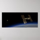A detailed view of the International Space Station (ISS), humanity's greatest achievement in international cooperation and space exploration. This magnificent orbital laboratory showcases its expansive solar panel arrays that power the station's systems, multiple pressurised modules that serve as living and working quarters for astronauts, and the complex truss structure that holds everything together. Orbiting Earth at approximately 250 miles altitude and travelling at 17,500 mph, the ISS completes one orbit every 90 minutes. This engineering marvel has been continuously occupied since November 2000, serving as a platform for scientific research, technology demonstrations, and international collaboration between space agencies from around the world, proving that humanity can achieve extraordinary things when working together beyond our home planet.