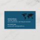 A modern and elegant navy blue idea for tourism professionals... A simple monogram (initials and a plane), your name with custom travel related occupation (travel-agent)... and address for contact and profession related words at the back, with the image of a map of the world...