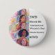 A button for International Women's Day to promote support of this day that celebrates women. This button has a group of diverse woman surrounded by colorful flowers and the hashtag #genderequality.