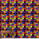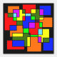 A mondrian style design, geometric and colorful, colored intersecting squares and rectangles