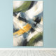 Soft arcs of slate blue, olive green, warm ochre, and luminous white sweep across the canvas, intersecting in a layered rhythm that feels both deliberate and fluid. Broad, painterly strokes overlap and dissolve into one another, creating a sense of movement held in balance—like currents crossing beneath a calm surface. This abstract composition invites prolonged viewing, revealing subtle shifts of tone and texture that reward quiet attention. Elegant and contemporary, the piece brings a grounded, contemplative presence to modern interiors, offering visual depth without overwhelming the space.