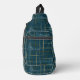 Intersecting lines and shapes creates a textured sling bag