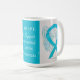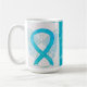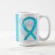 Interstitial Cystitis (IC) uses a blue turquoise awareness ribbon to show support for its awareness. This custom mug features blue turquoise awareness ribbon guardian angel art paintings with the message "I Hope and Support Interstitial Cystitis Awareness!" The custom blue turquoise awareness guardian angel ribbon art picture coffee cups or mugs can be customised with personalised messages to make great cause mugs for awareness fundraisers, awareness cup gifts, or other special events or cause support occasions. Make your own customised words for a personal message of hope and support to share!