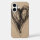 Artistic hand-drawn minimalist phone case featuring overlapping heart sketches in black with subtle pastel shadows on beige. Elegant and romantic, perfect for subtle expression of love.