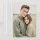 This wedding invitation features a warm, rustic design with two individuals embracing in an outdoor setting. The colour palette includes soft greens and beiges, creating a serene and harmonious atmosphere. The photographic style captures a genuine moment of connection, emphasising intimacy and tranquillity. Perfect for couples seeking a simple yet heartfelt aesthetic, this design celebrates love and unity in a natural, authentic way.