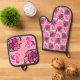 Into The Pink Mid Century Geometric Pattern Art Oven Mitt & Pot Holder Set