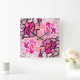 Into The Pink Mid Century Geometric Pattern Art Square Wall Clock
