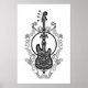 This unique bass guitar design is decorated with intricate lines and dot patterns. The four string instrument is surrounded by a large circle and swirling lines that frame the pattern and give it an elegant look. This stylish bass guitar graphic is perfect for bassists, musicians and lovers of music.