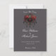 Lead your guests into a realm of dark, enchanting elegance with our exquisite black gothic save the date card. The deep, grey backdrop sets a dramatic stage, creating a striking contrast that captivates the senses. At the heart of the design hangs a bold black chandelier, symbolising both beauty and the allure of the dark. Illuminated by three flickering candles, this intricate chandelier is embellished with shimmering black onyx jewels, surrounded by delicate roses. Each element evokes a sense of mystique, casting a spell of magic and setting the tone for an unforgettable wedding day. Personalise this save the date with the details of your special day and invite your guests to embark on a journey into the shadows, where love and darkness intertwine.