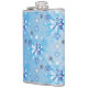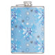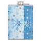 Intricate blue and white stars and snowflakes hip flask