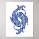 Intricate Blue Pisces Zodiac on White Poster