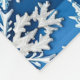 Symmetrical and artistic snowflake in vibrant blue tones, featuring intricate geometric shapes and frosty design elements against a white background, evoking a sense of winter and festive beauty.