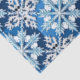 Symmetrical and artistic snowflake in vibrant blue tones, featuring intricate geometric shapes and frosty design elements against a white background, evoking a sense of winter and festive beauty.