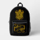 An artistic depiction of a gold bison or buffalo featuring a witch hat.
