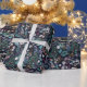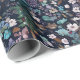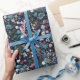 Intricate Designer Floral Christmas Trees on Navy Wrapping Paper