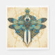 Detailed illustration of a dragonfly with colourful wings surrounded by decorative patterns in gold and blue, showcasing artistic elegance and nature's organic beauty.