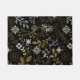 Intricate floral pattern with gold and white branches, leaves, and flowers on a black background. The design feels elegant and sophisticated.