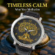 The image showcases a stunning gold Buddha statue, depicting serene features and intricate designs. The figure is seated in a meditative pose, surrounded by detailed floral motifs that symbolise peace and enlightenment, creating a calming atmosphere.
