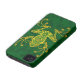 This tribal tree frog is decorated with intricate golden yellow swirls and dot patterns. The interior of the frog is painted a deep green color that is echoed in the background giving the pattern a beautiful contrast. A shadow falls just beneath the symmetrical tree frog making it appear to float just above the surface of this iphone4 case. This stylized design is a striking representation of this wonderful little creature.