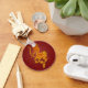 This stylised symbol for the zodiac sign of Sagittarius is decorated with intricate lines and dot patterns. The design features an elaborate archer with the body of a horse who is pointing his arrow down. This stunning yellow and red keychain is a beautiful and stylish way to show off your Astrological sign.