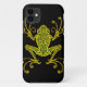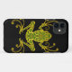 This tribal tree frog is decorated with intricate yellow swirls and dot patterns. The interior of the frog is painted a deep green color and it sits on a pure black background. This stylish iphone4 case is a striking representation of this wonderful little creature.
