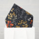 This image features a beautifully intricate pattern of leaves and berries against a black background. The design showcases various types of foliage in warm colours such as gold, red, and orange, interspersed with delicate white branches and dots, creating a visually appealing contrast. The overall composition exudes a modern artistic vibe, making it suitable for various decorative purposes including holidays.