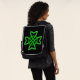 This Bold Face backpack with a interchangeable front face has a large intricate looped vivid green Irish Celtic knot design on a black background.