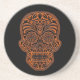 Intricate Orange Sugar Skull on Black Coaster