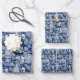 Intricate Parisian Blue Toile patterned Wrapping Paper Sheet