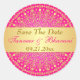 This 1.5" diameter round save the date wedding sticker in hot pink and gold has a circle medallion pattern with ornate gold scrolls and dots on it that matches the indian inspired wedding invitations shown below. If you would like any changes or need help with the text, please email niteowlstudio@gmail.com.