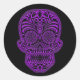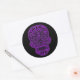 Intricate Purple Sugar Skull on Black Classic Round Sticker