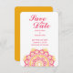 Save the date invitations featuring a circular Mandala. © Mood 4 Cute