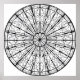 A complex, radially symmetrical Stained-Glass Sketch presented as an Abstract Mandala Pattern. The design is segmented by bold black lines into hundreds of intricate geometric shapes, creating a hypnotic, meditative focal point. Excellent for challenging colouring projects or large, highly detailed home decor prints.