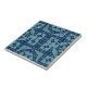 This ceramic tile features a complex geometric pattern that is both symmetrical and intricate. The design is chraacterised by star-like shapes and meticulous details, creating a visually appealing contrast. The tile is adorned with various shades of blue, ranging from deep navy to lighter tones. This colour scheme, combined with the three-dimensional illusion of the patterns, adds depth and vibrancy to the tile. It’s not just a surface covering, but a transformative element that can turn any space into an artistic display.