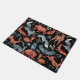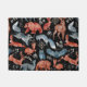 Illustrated woodland animals in red and blue, including foxes, bears, owls, and deer, are adorned with intricate patterns on a black background.
