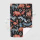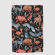 Illustrated woodland animals in red and blue, including foxes, bears, owls, and deer, are adorned with intricate patterns on a black background.