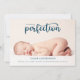 Celebrate your newborn in the sweetest way with this elegant and heartfelt birth announcement card. Featuring a soft, neutral background and a full photo layout, this design beautifully highlights your baby’s first portrait. The phrase “introducing perfection” is gracefully written in a modern script font, setting the tone for this minimalist yet sentimental design.