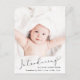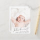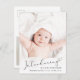 A modern birth announcement postcard. The front features his or her photo overlayed with "Introducing" written in a stylish script with a heart swash. Add his or her name, birth date and birth stats. On the back, add an additional picture and personalised message.